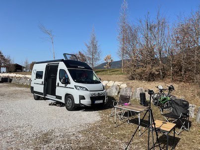 Schon am Donnerstag Morgen fuhren wir mit dem Caddy zur Garage und holten mein Auto ab. Gepackt hatten wir bereits am Abend zuvor, so ging es ganz fix und wir standen gegen Mittag auf unserem gebuchten Stellplatz (Platz Nr. 13). Ein Traumplatz, vor allem, wenn nichts viel los ist, so hatten wir einen superschönen Blick auf die umliegende Bergwelt.