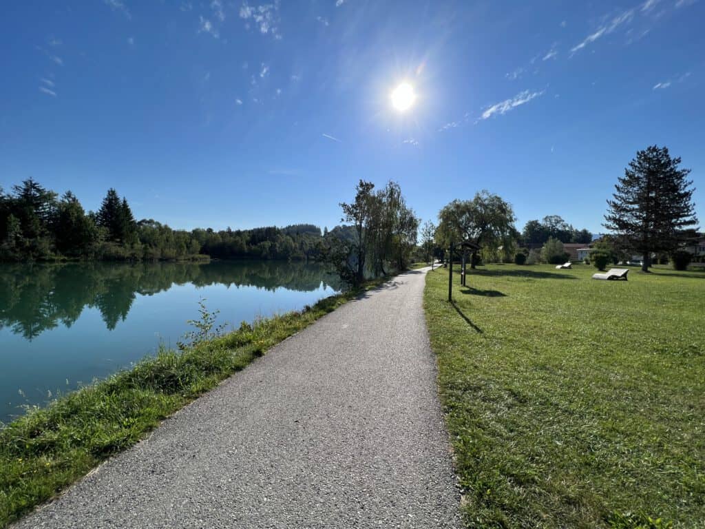 Zur Zeitüberbrückung habe ich mich eine Nacht auf den Stellplatz an der Isar in Bad Tölz gestellt… was auch gereicht hat. Der Platz war völlig überlaufen, es war total staubig und nachts ziemlich laut. Daher war ich sehr früh, als ich am nächsten Morgen abreisen konnte. Zuvor war ich noch bei Penny, der vom SP zu Fuß ca. 10 Min. entfernt ist; dabei entstand dieses Foto…