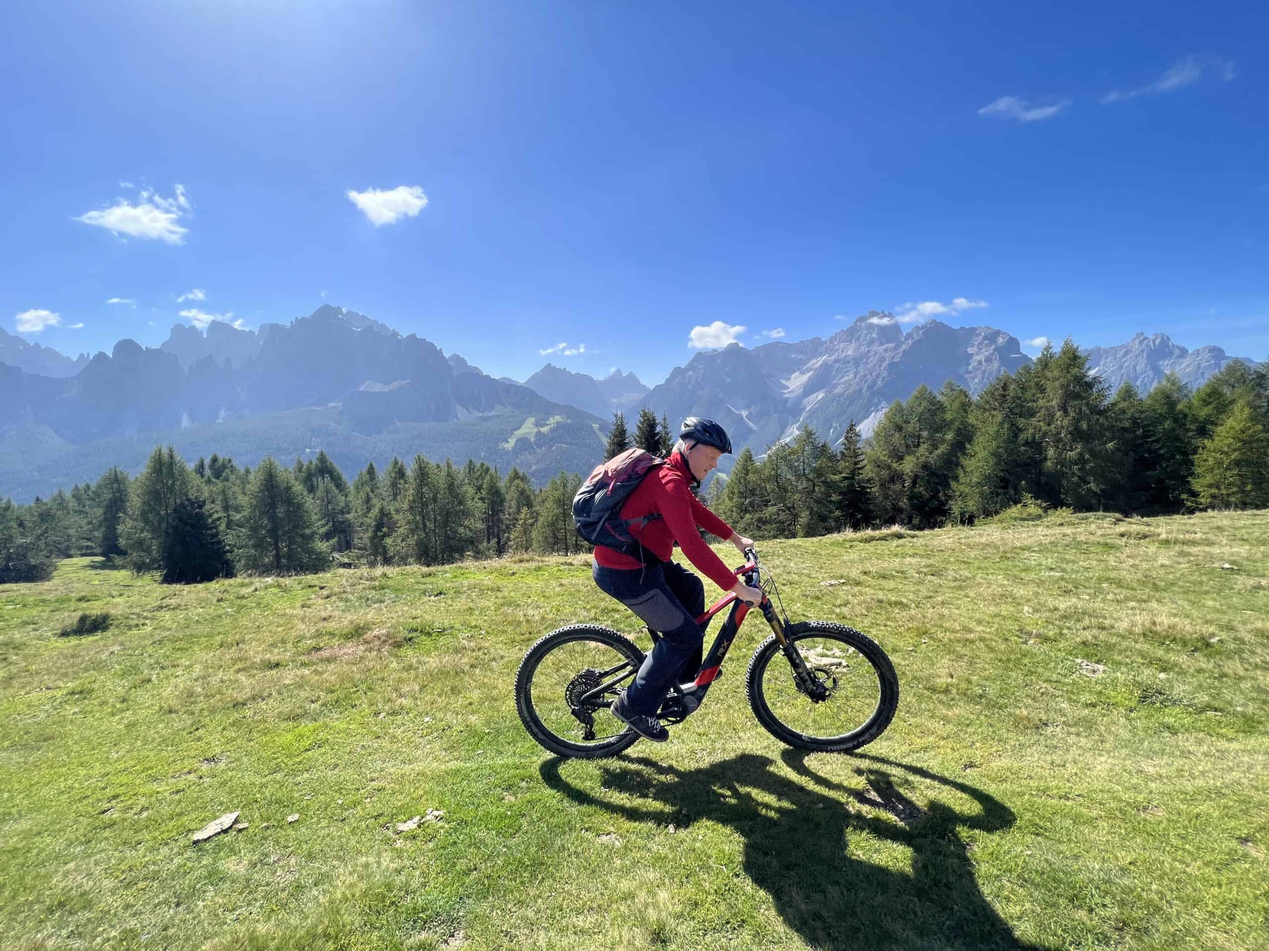 Es soll die Geburtstagstour für Christof sein und wählte er dafür die Nordseite und somit Sonnenseite der waldbewachsenen Pustertalflanke. Fix war ein Ziel gefunden, es ging ein Fahrweg zur bewirtschafteten Klammbach Alm, der so wie es schien gut zu befahren bzw. beradeln war. Es ging gleich zu Beginn steil hoch und der Weg wurde leider auch nicht flacher. Es war sehr anstrengend, bis wir endlich das Plateau erreichten, auf dem die Hütte stand.